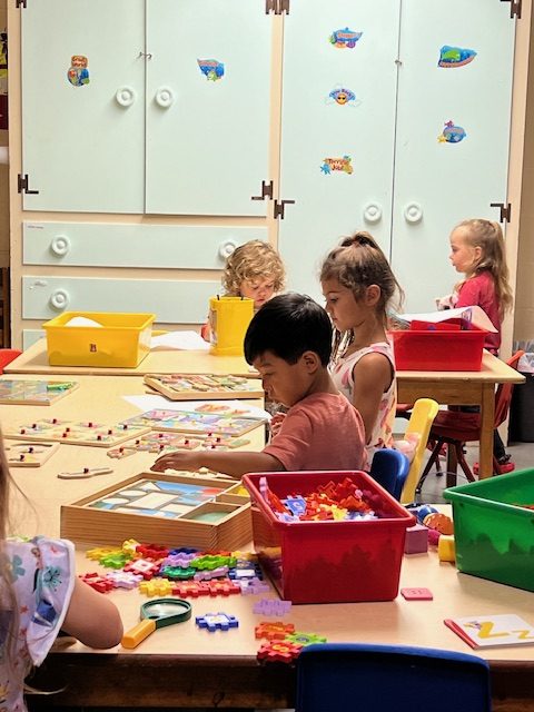 Our day begins with circle time where we greet the children and sing some songs. We then discuss the day’s theme, calendar, weather and read a story. Next is center time. Our play-based curriculum focuses on school readiness. We explore free play both in groups and individually. All children are free to choose areas of interest using table toys or other manipulatives. We encourage variety and individuality and we applaud accomplishments. All children participate in clean-up time, returning materials they have used, fostering responsibility and self-esteem.